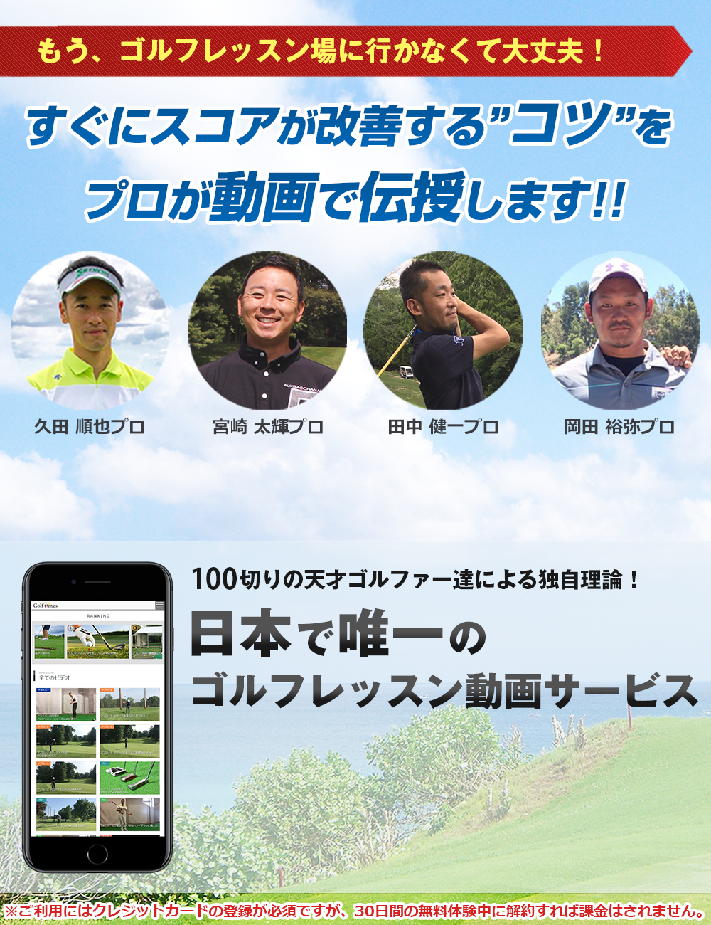 ゴルフは経験も大事ですがどう練習するか、どう修正するか、どうスコアをつくるかが非常に重要です。 どんなレベルであっても、3ヶ月で確実にスコアアップするためのレッスンをしています。
